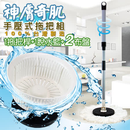【神膚奇肌】手壓式拖把組(2布盤)☆加碼再送輕巧型脫水籃☆